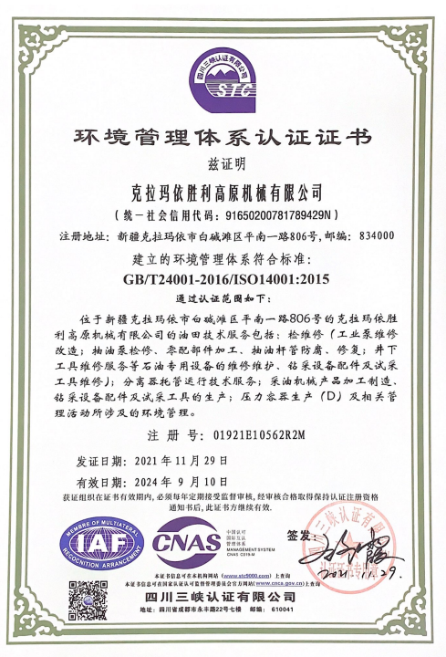 環(huán)境安全管理體系證書
