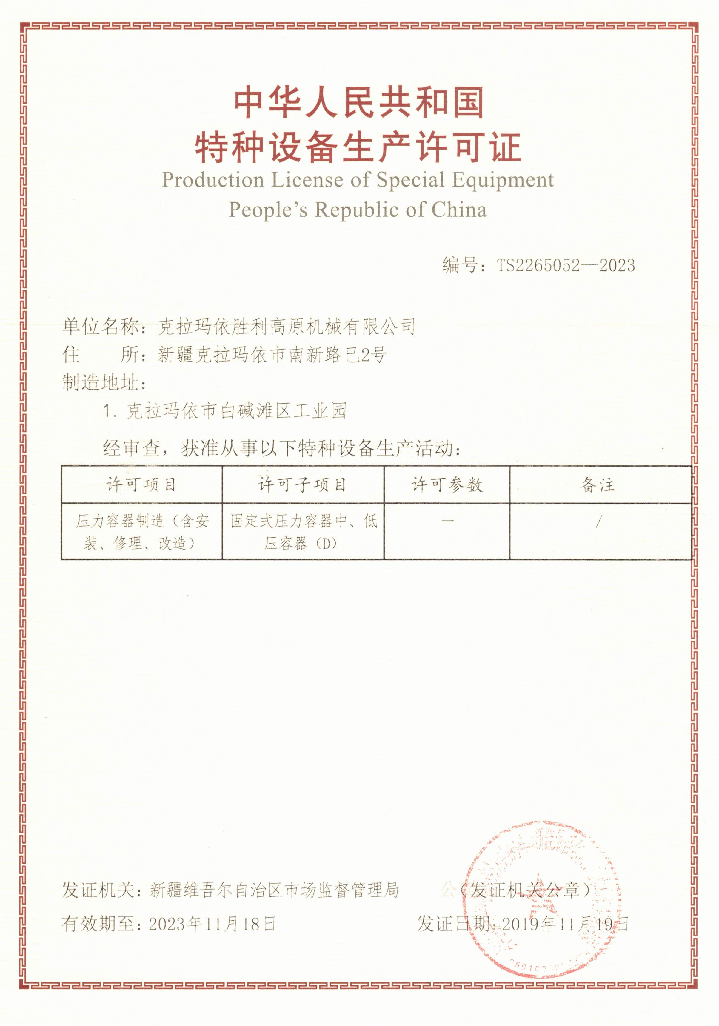 特種設(shè)備生產(chǎn)許可證-D級(jí)