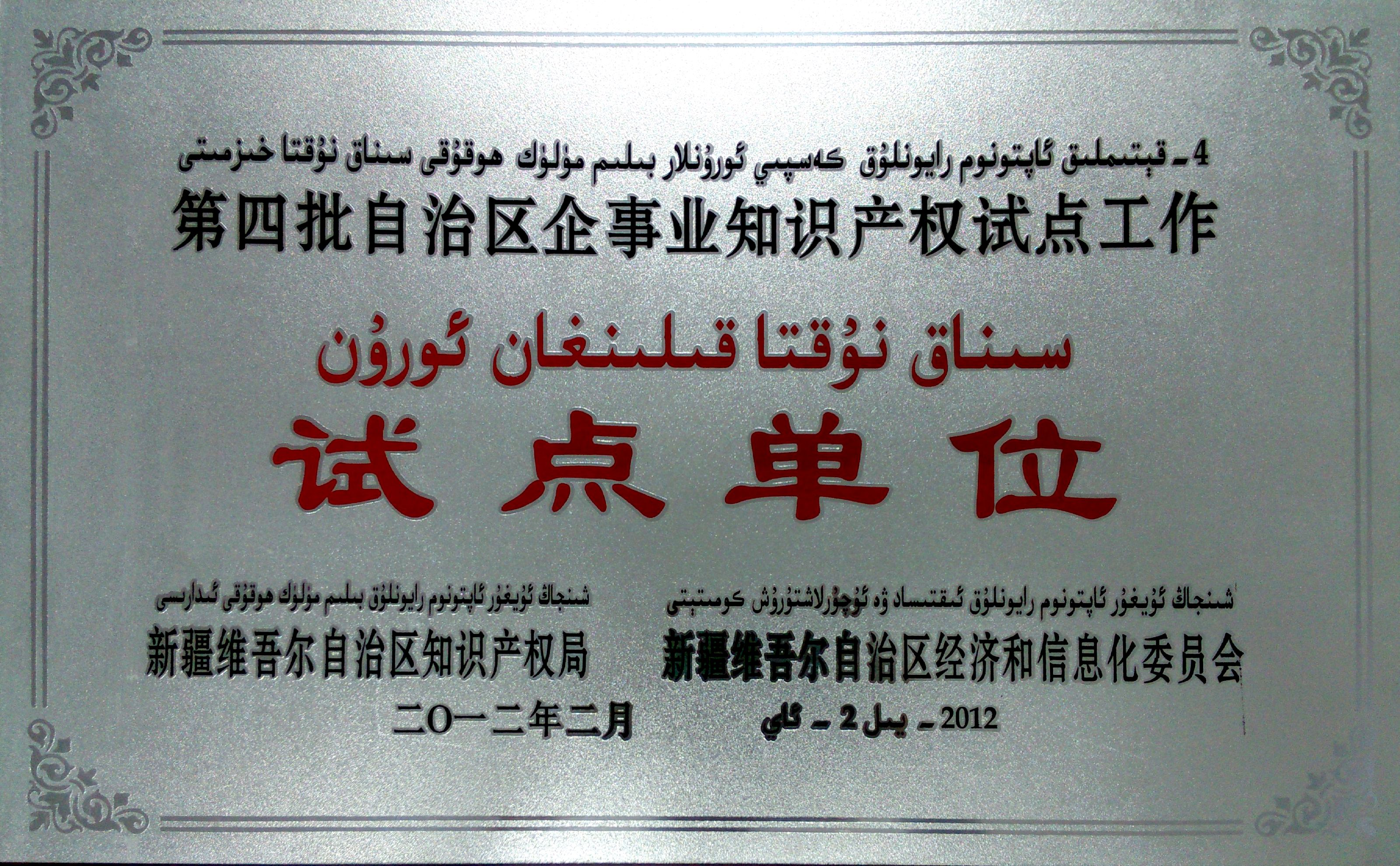 自治區(qū)級(jí)知識(shí)產(chǎn)權(quán)試點(diǎn)單位